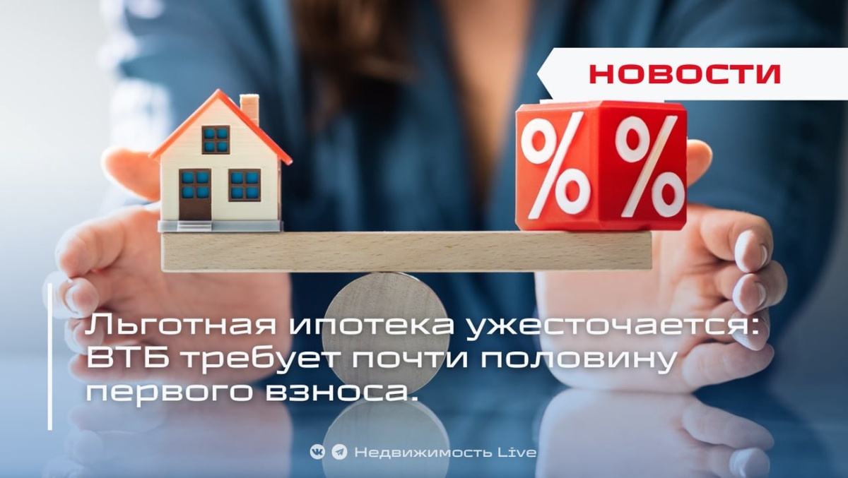 ⚡️ Льготная ипотека ужесточается: ВТБ требует почти половину первого взноса