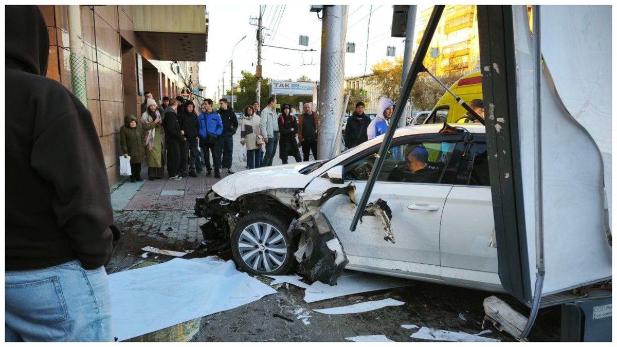 ДТП произошло в 18:00 30 сентября. На кадрах видно, как автомобиль опасно перестраивается в другую полосу, пролетает на красный сигнал светофора, врезается в другого участника дорожного движения, после чего сносит металлическое ограждение и рекламный щит возле входа в метро «Красный проспект».
