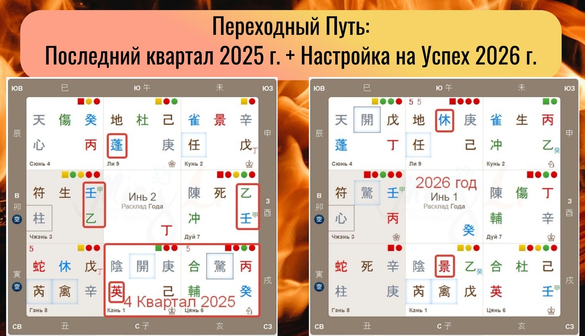 Годовой расклад показывает обратный отклик по Звездам и Небесным стволам - люди и тренды, меняются - стабильности мало. В таких условиях побеждает тот, кто: Действует на опережение. Гибко меняет стратегии. Не боится экспериментировать. «Время подобно реке — нельзя дважды войти в одно течение. Но можно научиться плыть быстрее других». ОКТЯБРЬ-НОЯБРЬ: Дворец Цянь (Северо-Запад) — Врата Тревоги.