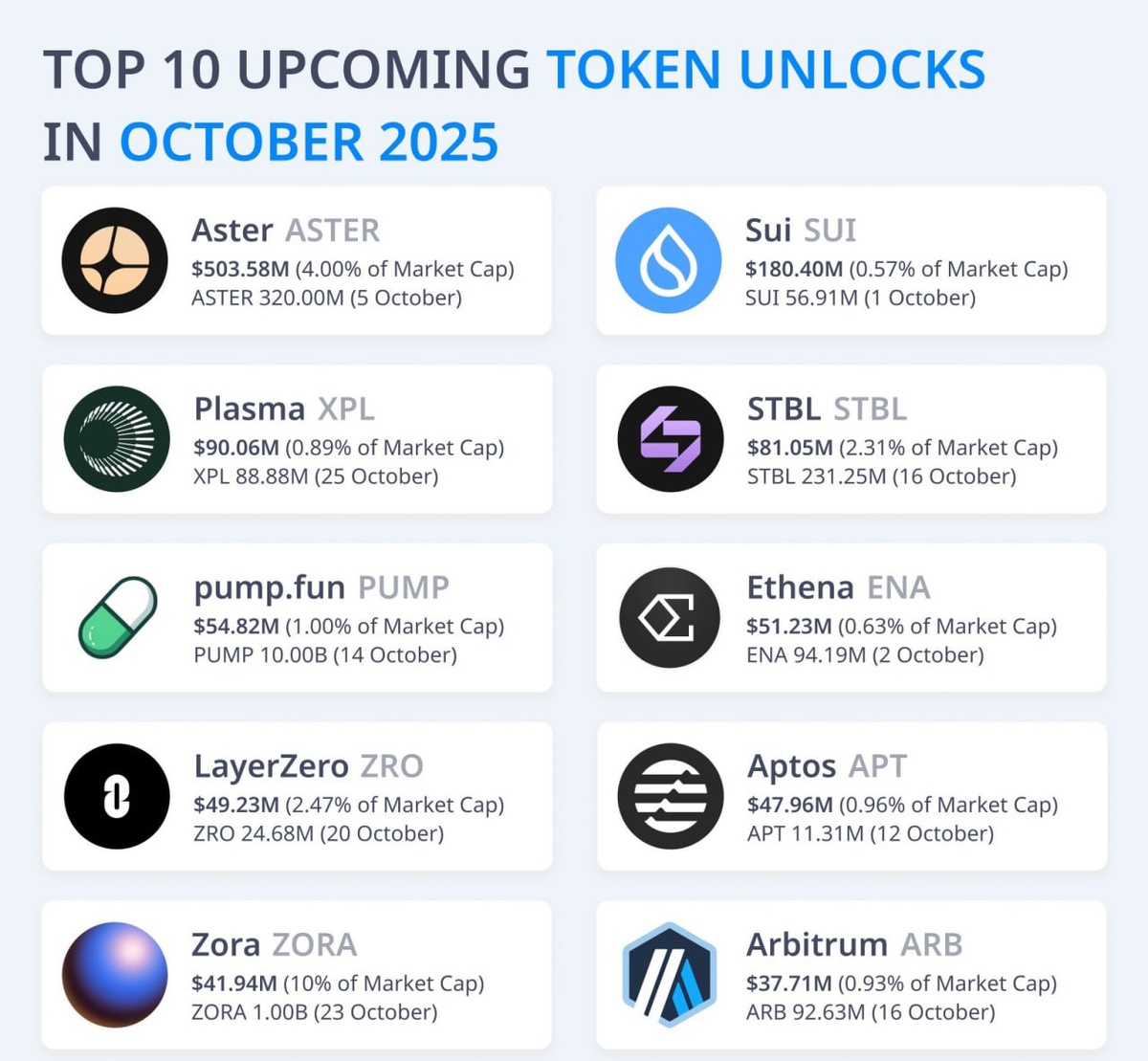 Cryptorank: топ 10 разблокировок в токенах в октябре