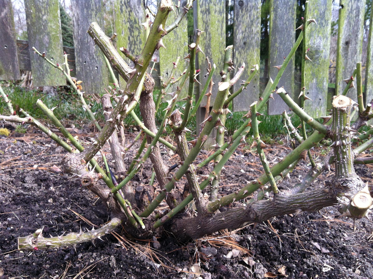 * Обрезка коротко (около 10 см над землей, точкой прививки),
