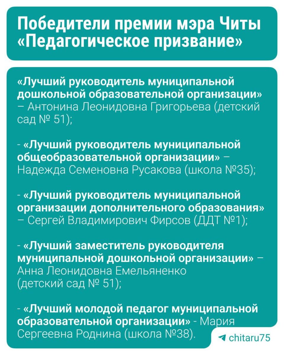 ✨В Чите наградили лучших педагогов премией мэра