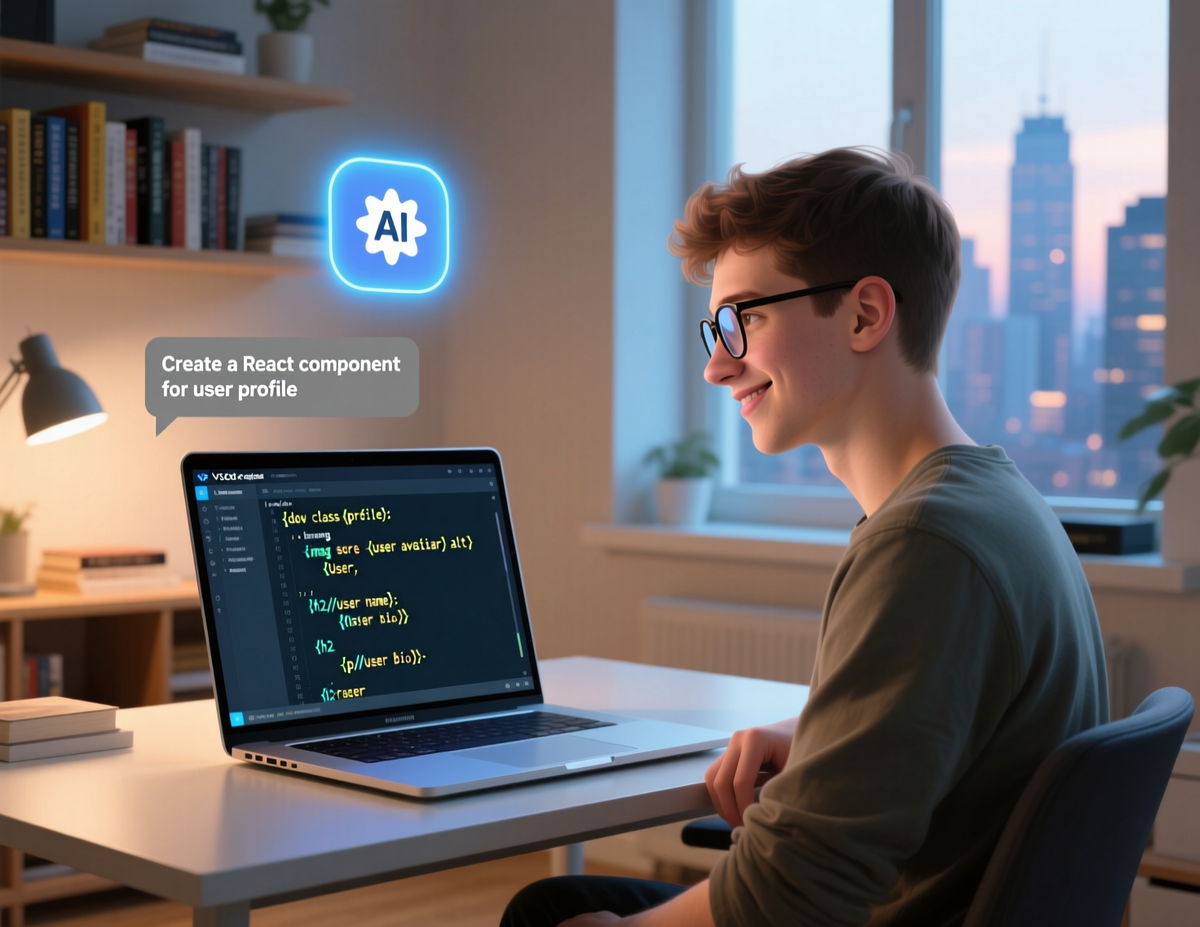 Дмитрий, фронтенд-разработчик, использует GitHub Copilot — нейросеть, которая предлагает код по описанию задачи. Он пишет комментарий: «Create a React component for user profile», — и получает готовый шаблон кода.