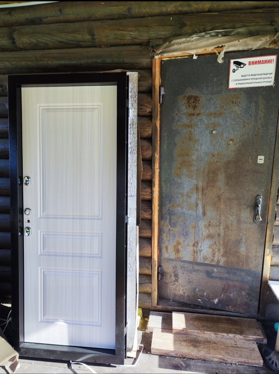 Всем привет! Даже не верится, но это случилось - установил входную дверь с терморазрывом. Когда строил дом, нужно было установить хоть какую-то дверь, естественно купил б.у., как обычно на первое время, но первое время затянулось на 5 лет. Мне кажется, если соседи не стали тоже менять входную дверь, то ещё бы годик другой простояла бы старая. Честно говоря у старой двери заедал замок и кроме меня никто не мог её закрыть и открыть😂 - от жены не раз прилетело замечание. Да и зимой когда -15 градусов, то дверь покрывалась льдом сильно и веял сквознячок, из-за чего на первом этаже быстро становилось холодно. Не буду умничать и расписывать как надо выбирать двери, потому что мне надо было на дачу самую бюджетную. Сначала выбрал самую дешёвую дверь с терморазрывом за 24500р, но мне как сказали, что это сплошное растройство и замки часто ломаются, а поменять замки на такой двери - значит разломать всю дверь. Поэтому выбрал подороже за 33500руб с хорошими замками. Даже получилось договорить