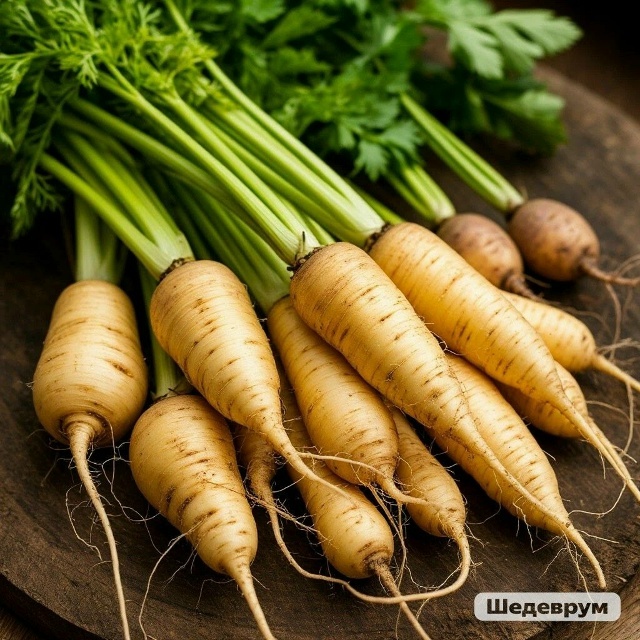 А вы знали, что пастернак еще называют белый корень, белая морковь или полевой борщ, а его корнеплоды содержат: витамины (С, В1, В2, В6, РР), каротин, пектины, минеральные соли, эфирные масла, придающие пастернаку специфический запах, калий (350-400 мг в 100 граммах), что позволяет рекомендовать пастернак для профилактики сердечно-сосудистых заболеваний, большое количество клетчатки (3,4 г в 100 граммах сырого овоща) — для решения многих проблем желудочно-кишечного тракта. Низкая калорийность (около 70 ккал в 100 граммах) привлечет внимание людей, соблюдающих диету. Кстати, он занимает одно из первых мест среди корнеплодов по содержанию легкоусвояемых углеводов (16 г – в 100 г сырого овоща), что обязывает внимательно относиться к пастернаку больных диабетом. Пастернак можно готовить в горячей воде, добавлять к супам и тушеным блюдам. Для приготовления пюре корень варят, измельчают и смешивают с маслом, сливками и специями — корицей или мускатным орехом. Когда его добавляют при жарке мя
