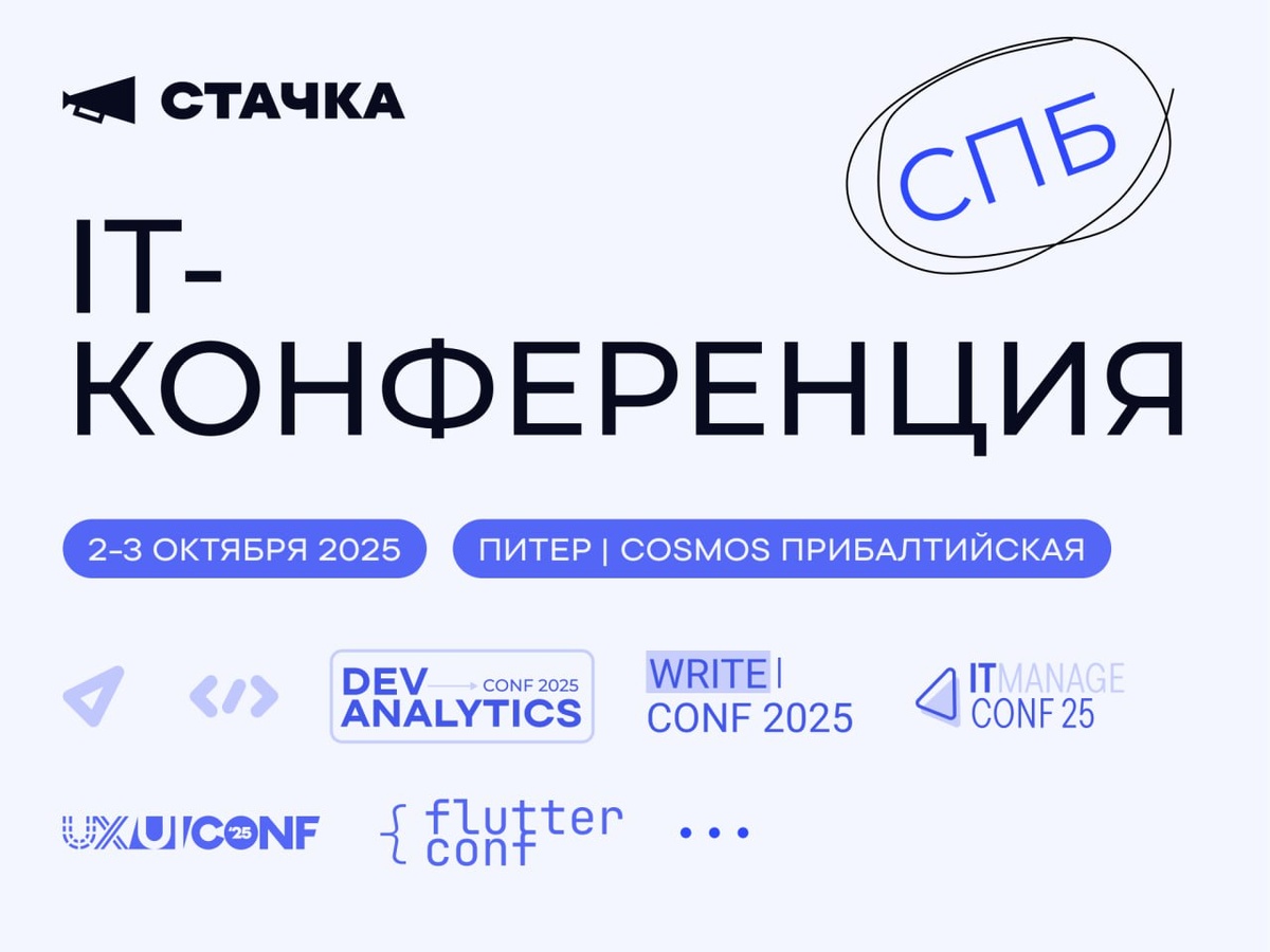 До Стачки уже считанные дни! 2-3 октября в Санкт-Петербурге (отель «Cosmos Прибалтийская») состоится XIV Международная IT-конференция «Стачка»! «Стачка» - это возможности: ➡️ Более 2000 IT-специалистов и лидеров мнений со всей России. ➡️ 250+ актуальных докладов и кейсов. ➡️ Интерактивные нетворкинг-сессии, экспертная зона ➡️ Громкое афтепати для отдыха и общения с коллегами. Самое время вывести свои скилы на новый уровень! Программа и билеты уже доступны на сайте: https://spb25.nastachku.ru/ НетВоркинг — все на Стачку!