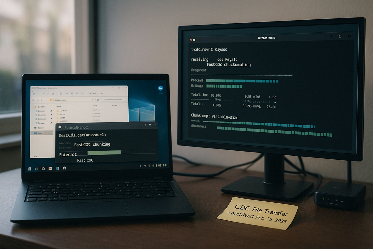 25 февраля 2025 года репозиторий CDC File Transfer был официально заархивирован. Для многих это событие прошло незаметно, но на самом деле мы потеряли интересный и технологически элегантный инструмент, созданный командой Google в эпоху Stadia. CDC File Transfer включал два ключевых инструмента: Обычный rsync работает с фиксированными блоками. Если файл изменён посередине, всё, что идёт после правки, пересчитывается заново. В результате скорость падает, особенно при работе с большими бинарными файлами или проектами с тысячами мелких изменений. CDC-подход строился на Content Defined Chunking (CDC). Вместо фиксированных блоков использовались переменные границы, определяемые содержимым файла. За счёт этого: ⚡ cdc_rsync мог быть до 30 раз быстрее стандартного rsync.