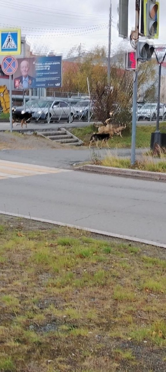 💭 Подписчики пишут:Салехард, перекресток Свердлова-Пушкина. Стаи собак. Рядом школа, детей много там ходят