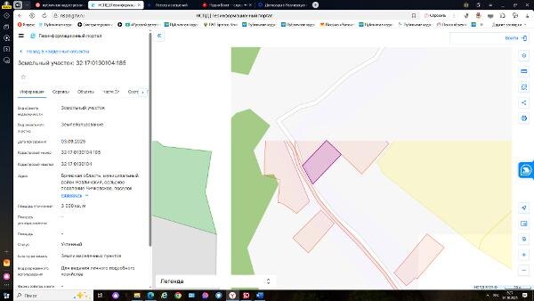 Название: право собственности на земельный участок из земель населенных пунктов с кадастровым номером 32:17:0130104:185, местоположение