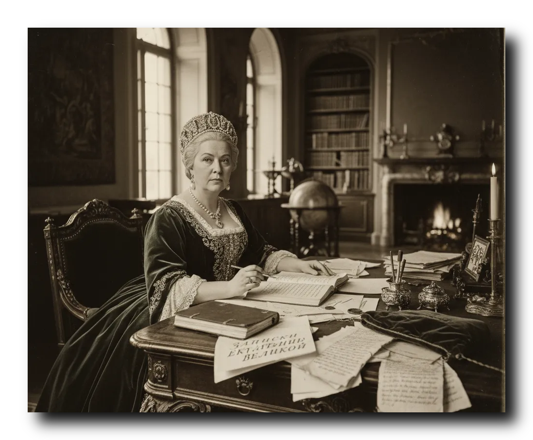 Коллеги, читатели, просто случайные гости моего скромного виртуального кабинета — Владимир Николаевич приветствует вас! 👋 Сегодня я предлагаю нам вместе отправиться в увлекательное, а местами и весьма пикантное путешествие сквозь толщу веков. Мы заглянем туда, куда официальные биографы предпочитают не совать нос, — в личные записки императрицы, чей ум и воля определили судьбу огромной империи.