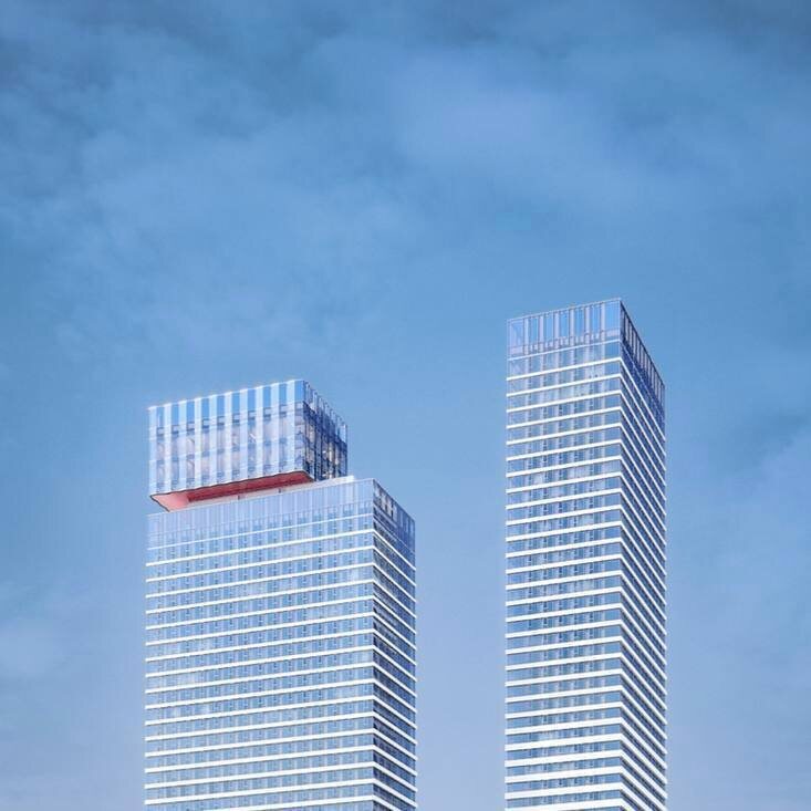 Жилые башни развёрнуты под прямым углом относительно друг друга. Первая башня насчитывает 47 жилых этажей, вторая 37, причём несколько её верхних уровней решены как самостоятельный объём пентхаусов, визуально отделенный от «тела» небоскрёба.