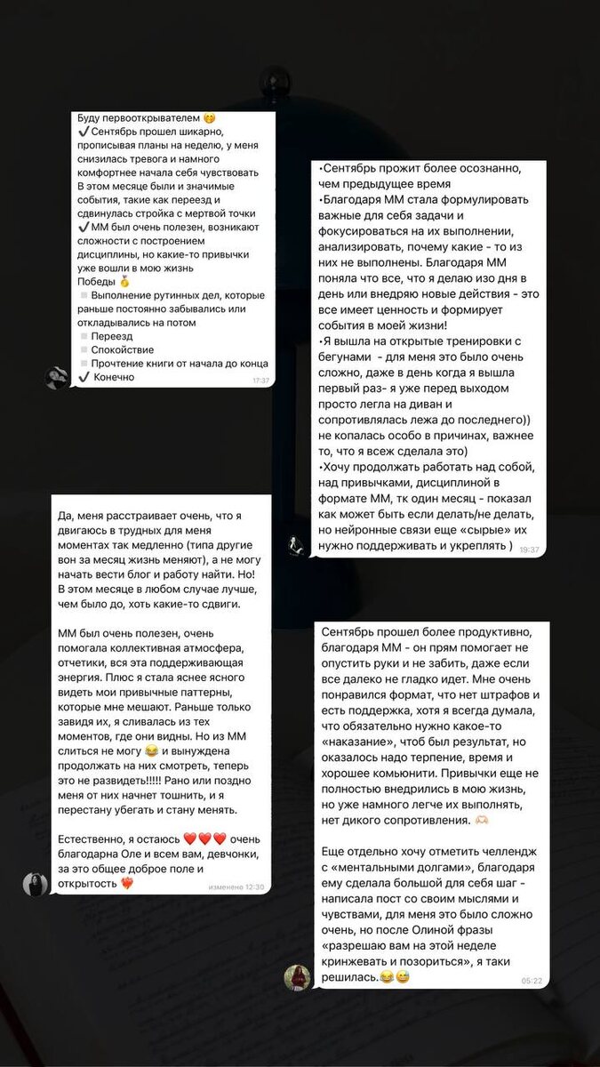- поддержка - мотивация - полезные подкасты - практики - ссылки на проверенные товары - безопасная атмосфера где можно быть собой - много жизни и личных историй -