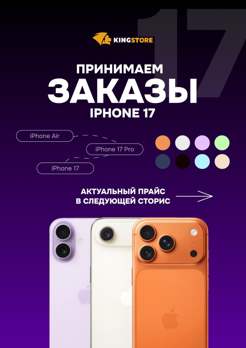 Пора обновиться на новенький iPhone 17🔥 К заказу доступны все модели, просто напиши нам и мы привезем в течение 1-2 дня❕ ✅Гарантия 2 года ✅Рассрочка сроком до 24 месяцев ✅Аксессуары в подарок Чтобы оформить заказ пиши нам: https://t.me/Kingstoremassage❕ *Цена может изменяться в зависимости от цвета iPhone *Цена указана за наличный расчет _________________________ ❤️ - хочу себе такой 💩 - очень дорого