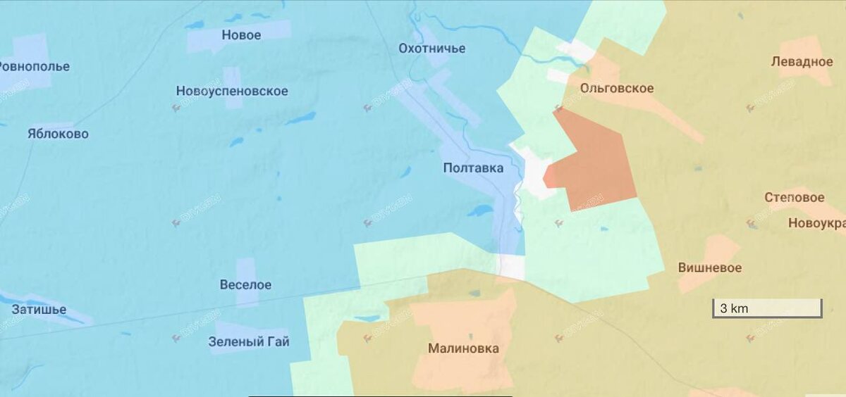 Идёт штурм с. Полтавка. Армия России закрепилась на восточных окраинах села и накапливает силы для развития успеха. Всё ещё сильна группировка БПЛА ВСУ, поэтому приходится соблюдать повышенные меры предосторожности.