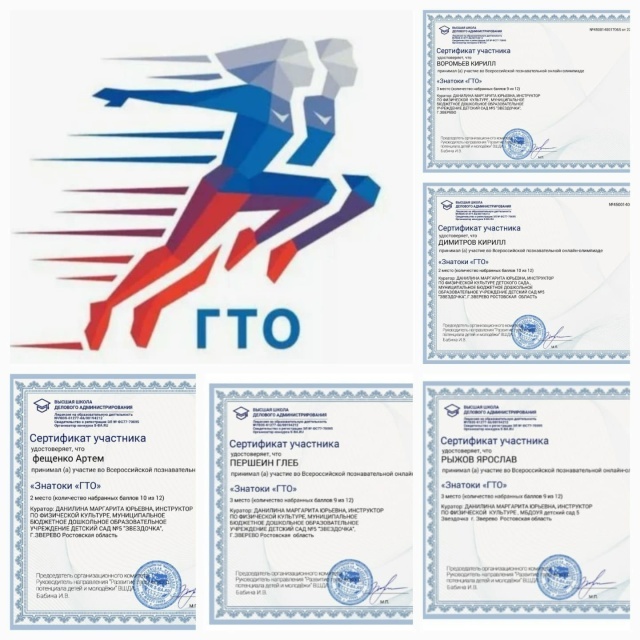 Воспитанники детского сада «Звездочка» города Зверево приняли участие во Всероссийской познавательной онлайн олимпиаде «Знатоки ГТО». Участники олимпиады – воспитанники подготовительных групп «Лучики» и «Подсолнушки» детского сада №5 «Звездочка» — успешно справились со всеми заданиями и физическими упражнениями виртуальной олимпиады «Знатоки ГТО». Призерами олимпиады стали: Артем Фещенко, Глеб Першеин, Кирилл Димитров, Ярослав Рыжов и Кирилл Воромьев. Подготовила ребят к олимпиаде инструктор по физической культуре детского сада «Звездочка» Маргарита Данилина. Напомним, ранее сообщалось о том, что в спортивной школе «Олимпик» города Зверево прошел мастер-класс по футболу. В этот день тренер-преподаватель спортивной школы «Олимпик» Альберт Овчар ознакомил воспитанников группы «Подсолнушки» детского сада №5 «Звездочка» с основами командной игры в мяч. «Яркие эмоции и искренняя увлеченность сопровождала ребят на протяжении всего мастер-класса. Уверены, что навыки и знания, получ