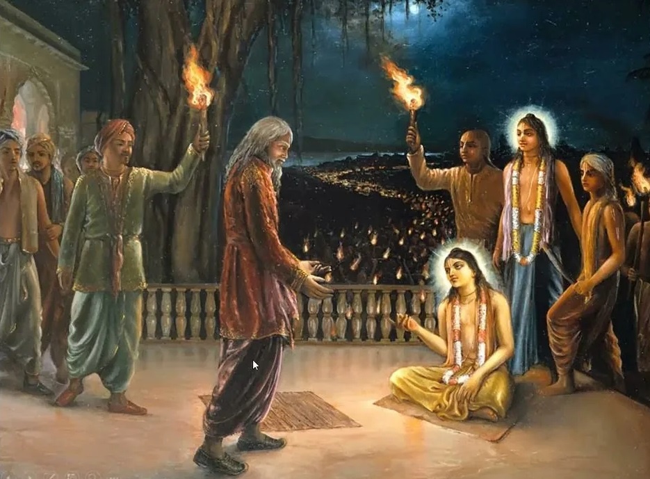 А: Где то в начале 16го века, в эпоху нового Витка для деградаций в жизни человека, в Бенгалии, на острове Симантадвипа, Шел Киртан, и Звучали Караталы, и Мриданг все слышали отчетливые ритмы. И все это как раз происходило, во тьме молчания, запрета на Святое Имя.А Почему? Сейчас мы объясним для понимания.