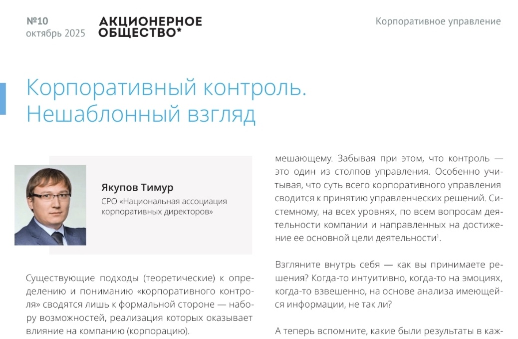 С выходом) Корпоративный контроль - вещь для кого-то не понятная, а для кого-то открывает доступ к стратегически важному ресурсу. О каком ресурсе идет речь? Как непонятное сделать неиссякаемым? Как настроить доступ к ресурсу, чтобы не попасть из-за «я ему доверяю!» или из-за борьбы за власть в компании? Читайте в моей новой статье в любимом журнале) Все как всегда нешаблонно и просто! . . . . . #психологияпрофдиректора #прокачаймозги #корпоративнаяазбука #корпоративныйбукварь #тимурякупов #профессиональныйдиректор #корпоративноеуправление #советдиректоров