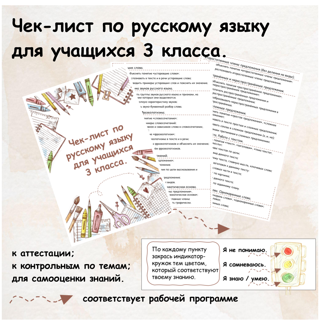 Программа по русскому языку для 3 класса. Чек-лист для учащегося по темам и умениям.