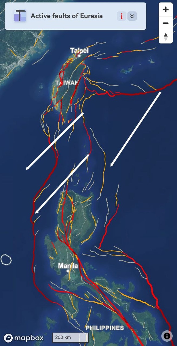 На северо-западе Филиппинской плиты наблюдаются ОСТИ к северу от Лусона (со смещением проецируется тайваньская рифтовая зона), а также к югу