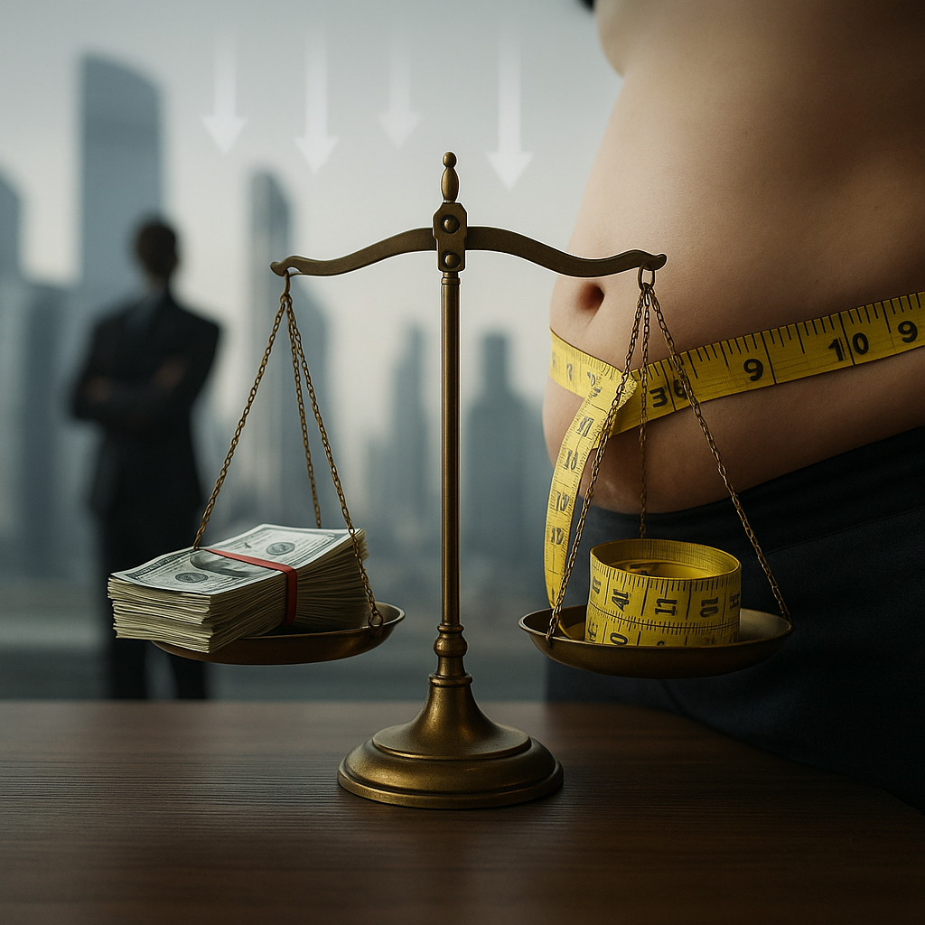 И у мужчин, и у женщин наблюдается устойчивая «зарплатная пенальти» при ожирении в течение первых двух десятилетий карьеры. pubmed.ncbi.nlm.nih.gov/29306894/ систематический обзор с мета-анализом про направление связи между доходом и ожирением. Низкий доход связан с более высоким риском ожирения. Результаты (21 исследование): низкий доход → позже развивается ожирение + ожирение → со временем ниже доход. На сегодня доказательств больше к тому, что ожирение ведёт к снижению дохода. pubmed.ncbi.nlm.nih.gov/14998816/ У женщин с ожирением в группах высшего образования и офисные/руководящие доход был значимо ниже, чем у женщин с нормальным весом.