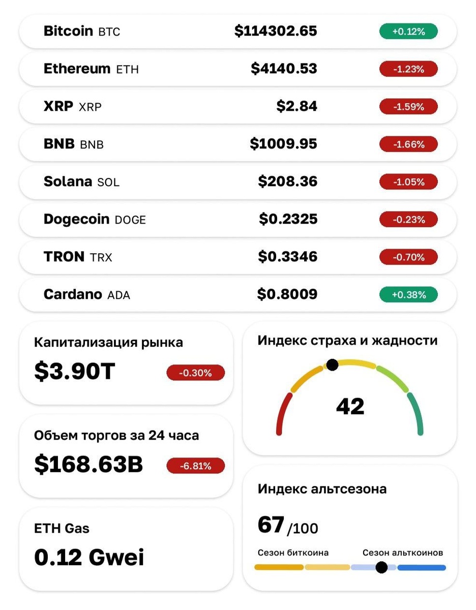 ☕️ Крипторынок на утро 01.10.2025 Индекс страха и жадности: 42 Индекс альтсезона: 67 Доминация BTC: 58,89% 😰 Ликвидации: За последние 24 часа было ликвидировано 161 207 трейдеров, общая сумма ликвидаций составила $436.80 million. Самый крупный отдельный ордер на ликвидацию произошел на Binance - ENAUSDT на сумму $8.94M. Лонг $242.74M Шорт $194.23M Лонг/Шорт держатели BTC: 🙈 Лонг: 47,20% Шорт: 52,80% Дневник Криптоинвестора🚦