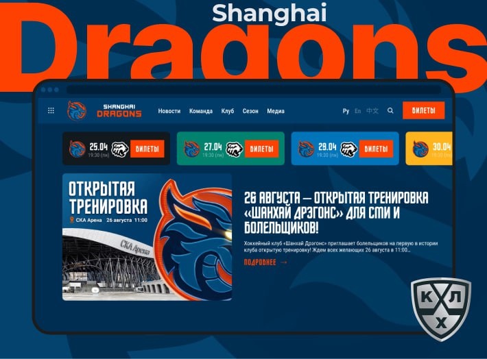 Врываемся в новый сезон КХЛ вместе с Драконами! 🐉 Летом китайский клуб обновился по всем фронтам: - Новый бренд и визуальный стиль, - Новая прописка (пока что - это Петербург) - Серьёзные изменения в составе. И ещё одна важная часть апгрейда — новый сайт, который сделали мы, 2ДИТ 👉 hc-dragons.com Что реализовано: ✨ Эксклюзивный дизайн по гайдлайну клуба — всё строго в единой айдентике, 📅 Календари, афиши, матчи, карточки игроков — полный спортивный must-have, 🌍 Мультиязычность — ведь клуб международный, и болельщики следят за ним не только в России и Китае, но и по всему миру. Для нас это важный релиз: ещё одно подтверждение компетенций в работе с профессиональными спортивными клубами. Мы уже делали сайты для футбольных команд, теперь в арсенале — хоккейный клуб КХЛ, да ещё и с международной аудиторией. Сайт работает как центр притяжения болельщиков: узнавать о матчах, следить за командой и быть ближе к «Драконам» теперь стало проще и удобнее. 🔥 Шанхайские Драконы начинают с