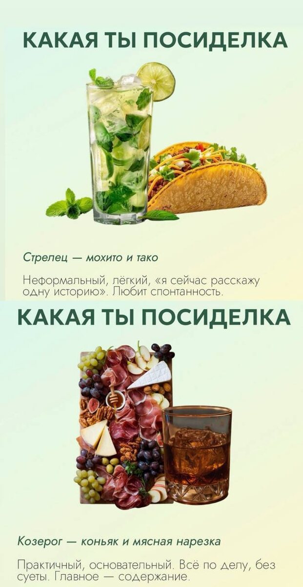 ⭐️Астрологи выяснили, какая вы посиделка по знаку зодиака Наконец-то действительно полезные гороскопы Не зря говорят: 🍸Среда - это маленькая пятница Мы сегодня варим борщ и открываем просеко…. А какие у вас предпочтения, если слушать звезды?