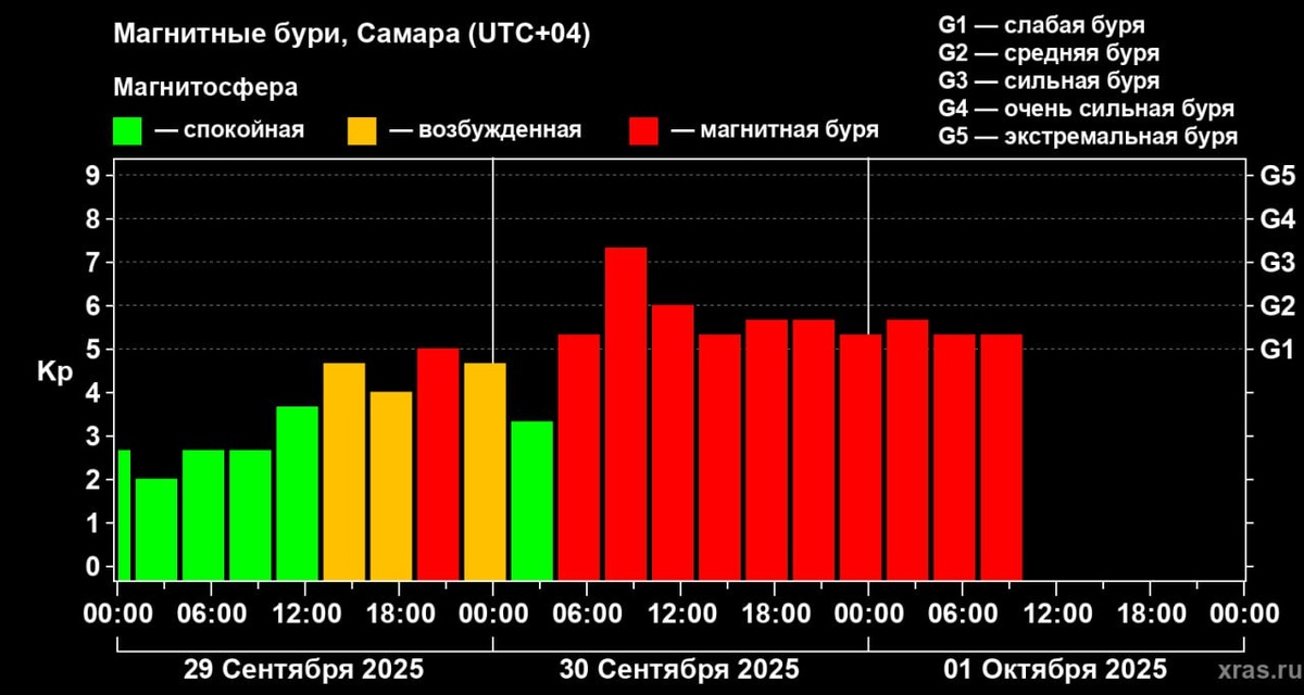 Геомагнитный шторм непрерывно продолжается уже около 30 часов. Об этом сообщили в Лаборатории солнечной астрономии в среду, 1 октября. На текущий момент значения бури достигают пяти баллов по девятибалльной шкале. — За прошедшие сутки параметры межпланетной среды изменились преимущественно в худшую сторону. Примерно с 400 км/с до около 700 км/с возросла скорость солнечного ветра в окрестностях Земли. Температура плазмы увеличилась в три раза, со 100 до 300 тыс. градусов. Некоторую поддержку оказывает умеренное значение напряженности межпланетного магнитного поля, — рассказали в Лаборатории. Астрономы отмечают, пока не известно об окончании возмущений, но прогноз на ближайшие сутки остается неблагоприятным.