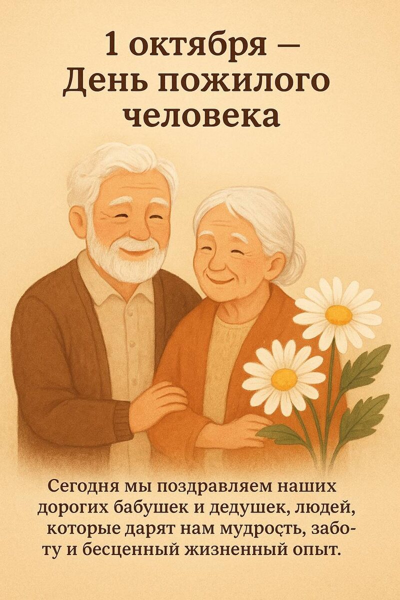 👵👴 1 октября — День пожилого человека Сегодня мы поздравляем наших дорогих бабушек и дедушек, людей, которые дарят нам мудрость, заботу и бесценный жизненный опыт. ✨ Этот праздник появился в 1990 году по инициативе ООН, а в России его отмечают с 1992-го. Его главная идея — напомнить всем нам, как важно быть рядом с поколением, которое вырастило нас, передало традиции, воспоминания и добрые советы. 💌 Интересно, что символом Дня пожилого человека часто называют ромашку — цветок простоты, искренности и тепла. Точно так же, как и наша забота о старших: она не требует громких слов, а лишь немного внимания и любви. 🌿 Давайте в этот день (и не только сегодня!) позвоним родителям, заглянем к бабушкам и дедушкам, скажем им простое, но важное: “Спасибо, что вы у нас есть”. Пусть сердца наших пожилых близких будут согреты заботой и ощущением, что они нужны и любимы. ❤️ #деньпожилогочеловека #бабушкидедушки #забота #праздникироссии #гбуокцсзао
