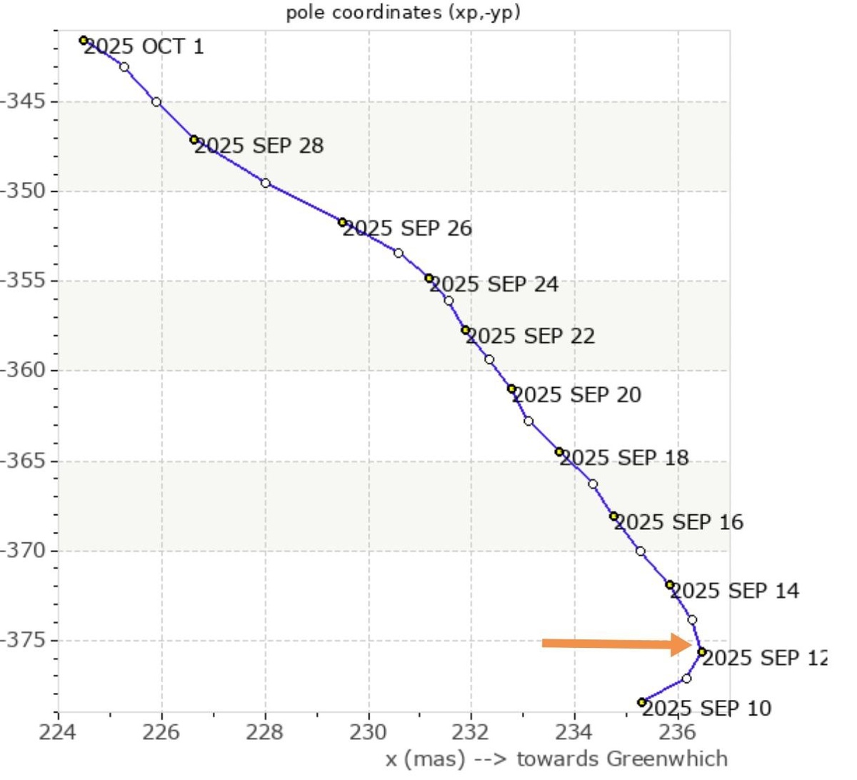В ответ на пост Как раз подходит гармоника Г-21+/-2 дня от смены траектории полюса вращения Земли.