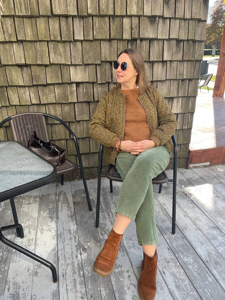 Погода солнечная , выставка красивая , настроение хорошее и брошка ручной работы как нельзя лучше вписалась на моем мохнатом мохеровом джемпере.