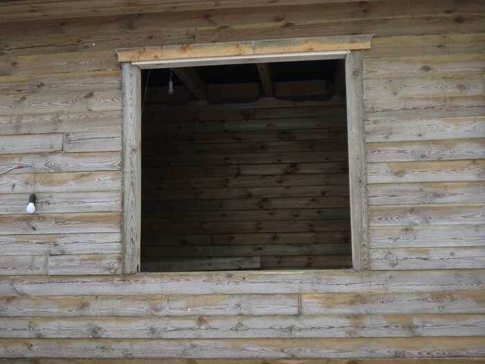 Обычно брёвна между собой скрепляют деревянными нагелями. Они держат древесину, чтобы она не двигалась по горизонтали. Поэтому прорезанный проём может остаться на месте, удерживаемый этими элементами. В этом случае надо подрезать нагель, держащий верхний брус, и сверху вниз постепенно разобрать весь проём. В нашем случае вместо нагелей использовалась арматура, поэтому мы работали болгаркой.