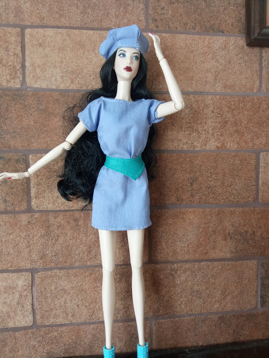 Всем огромный привет 🤗. Очень рада вас видеть 😊 ❤️. Как вы уже знаете меня зовут Арина и я люблю шить одежду для кукол . Сегодня мы сошьем с вами джинсовое платье и берет Приступим. Выкраиваем детали платья Сшиваем по плечевому шву Пришиваем обтачку горловины лицом к лицу Пришиваем обтачку рукавов Перекидываем на изнанку и прошиваем Сшиваем платье по боковому шву Сшиваем по заднему шву Подворачиваем и подшиваем низ Пришиваем липучку Платье готово Выкраиваем детали пояса Делаем отстрочку Пришиваем кнопку Выкраиваем детали берета. Вот тут когда я сшила у меня возникли проблемы. Он оказался маленьким , но голову Барби он не налезит, надо делать не 6 клиньев как сделала я , а 7 или 8. Сшиваем клинья между собой У подклада тоже. Низ подклада и низ самого берета подворачиваем Вставляем его друг в друга и прошиваем Наш комплект готов, спасибо , что были со мной до конца ❤️