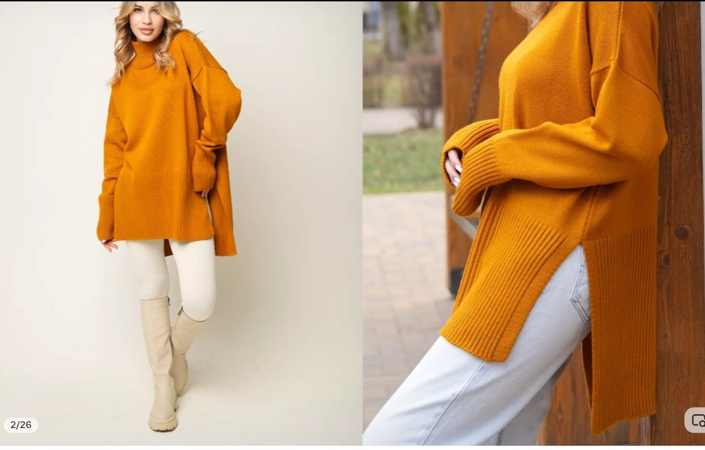 Свитер женский оверсайз на осень и зиму — один из самых модных трендов сезона. Модель свободного кроя не сковывает движения, дарит комфорт и уют, а боковые разрезы добавляют стильный акцент. Универсален для девушек и женщин любого возраста, подходит для школы, работы и прогулок.