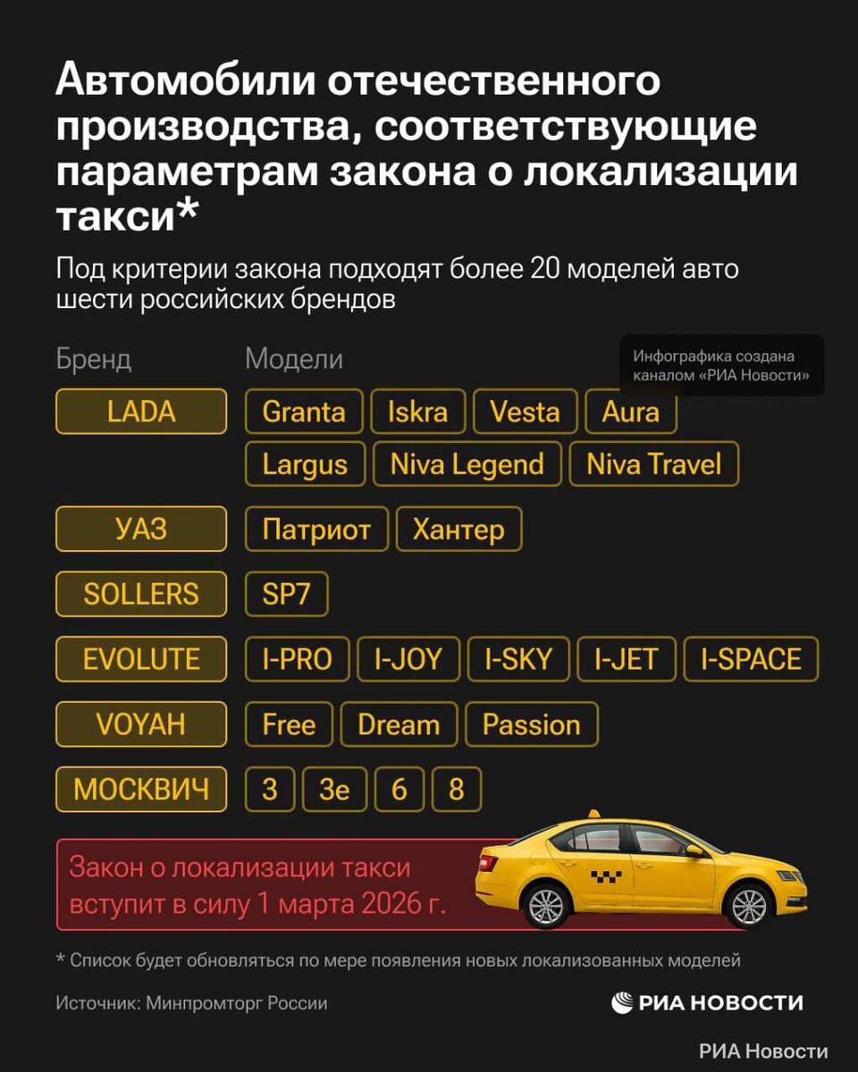 🚕 Минпромторг утвердил список автомобилей для работы в такси с 1 марта 2026 года