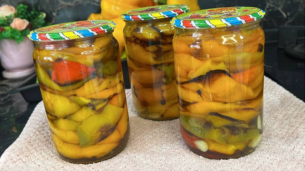 Всем привет! Сегодня хочу поделиться отличным рецептом заготовки на зиму — болгарским перцем, запечённым в духовке. Готовится такое лакомство легко и без стерилизации, так что оно точно понравится всем без исключения! Сначала подготовим ингредиенты: - Болгарский перец — столько, сколько поместится в вашу литровую банку; - Вода кипячёная — около стакана; - Растительное масло — примерно 3−4 столовых ложки; - Горошины душистого перца — 2 шт.; - Горошины черного перца — 2 шт.; - Чеснок — 1 небольшой зубчик; - Соль — 1 чайная ложка; - Сахар — 2 чайные ложки; - Столовый уксус 9% — 2 столовые ложки. Итак, приступим: 1. Подготовка перца: Тщательно промоем каждый перчинку, аккуратно вырежем сердцевину вместе с семенами и нарежем половинками или четвертинками. Затем выложим нарезанный перец на тарелку или полотенце, дадим обсохнуть немного. 2. Подготовительные этапы: Заранее простерилизуем литровые банки удобным способом (над паром, в микроволновке или духовке). Крышки тоже хорошо прокипятим,