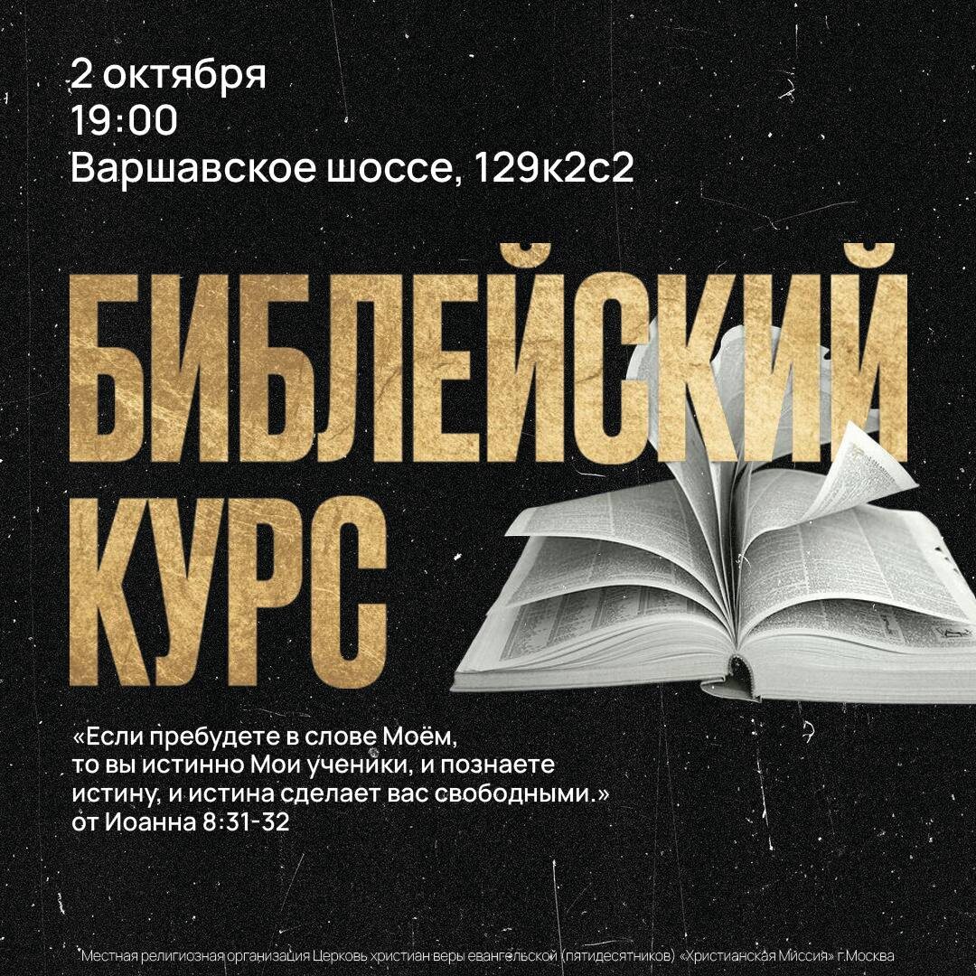 2 октября / 19:00 / Варшавское шоссе, 129к2с2, 5 этаж, офис 501 Этот курс поможет нам глубже познать Божье Слово и жить по Его заповедям 🙏 Приглашаем вас присоединиться, чтобы вместе учиться и возрастать в вере! «Все Писание богодухновенно и полезно для научения, для обличения, для исправления, для наставления в праведности» (2 Тим. 3:16) Подробности можно уточнить у лидера вашей домашней группы ❤