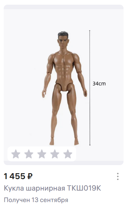Плюс к тому, я заказала сверхбюджетное тело женское из этой же оперы для Аши. Мне надо было уточнить скинтон. С Ашей йогой он совпал прекрасно, по мужику это было понятно сразу. Так что, не смотря на ценник, парня я оставила. А второго посветлее скинтоном заказала уже дешевого на Озоне. Смотрю сегодня он совсем подешевел еще на 100р.