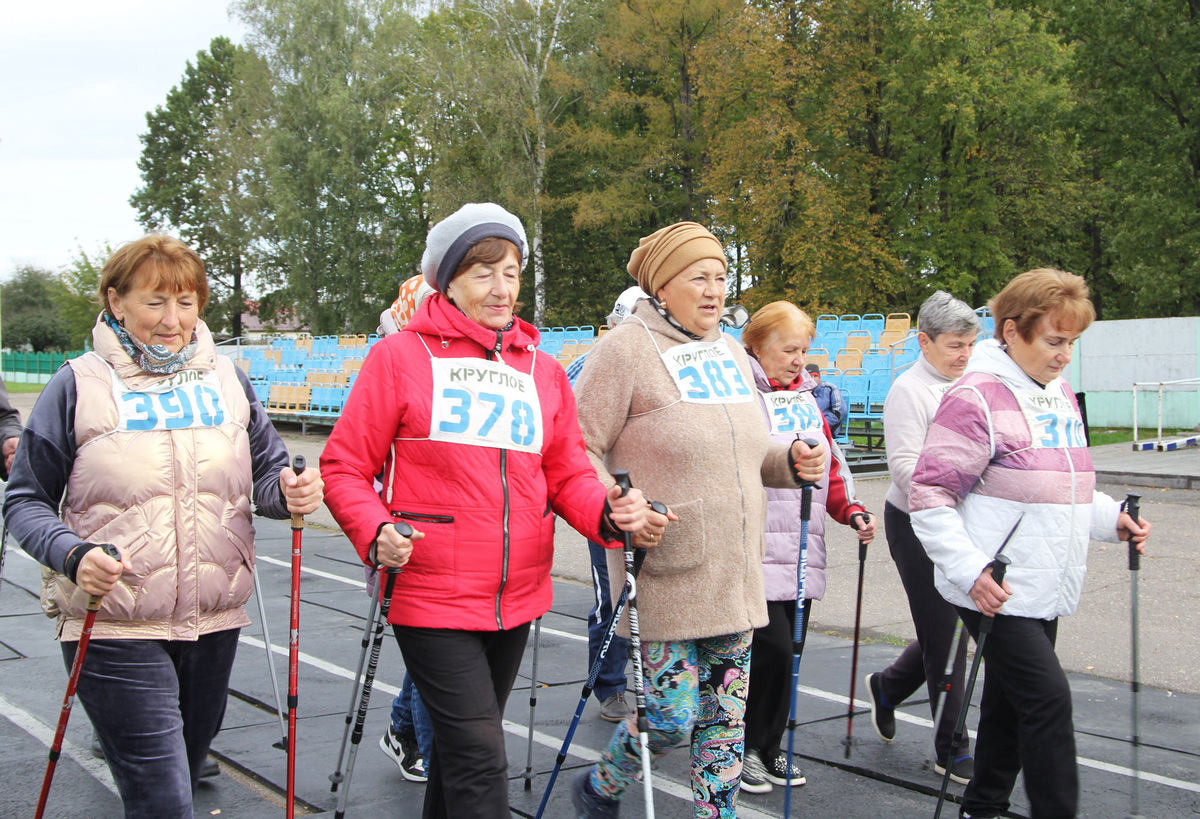 В нашей стране проходит «Марафон по скандинавской ходьбе» для людей старшего поколения. В рамках него накануне Дня пожилых людей определили свой маршрут по скандинавской ходьбе и в Круглянском районе. Тропа здоровья пролегла на городском стадионе и в центральном парке культуры и отдыха. Мероприятие, организаторами которого выступили сектор спорта и туризма райисполкома и филиал «Круглянский ФСК» Круглянской ДЮСШ, прошло интересно. Участие в соревнованиях приняли 15 человек золотого возраста. Перед стартом с приветственным словом ко всем участникам обратился заведующий филиалом «Круглянский ФСК» Олег Владыко. Он провёл инструктаж и дал разрешение на старт. За время пути ветераны труда зарядились энергией и позитивом, после прохождения дистанции они делились впечатлениями. – Скандинавская ходьба – это здоровье, – говорила Татьяна Левченко, кстати говоря, самая старшая в женской группе участница (ей 81 год). – Улучшается дыхание, чувствуешь себя просто чудесно в особенности от того, что