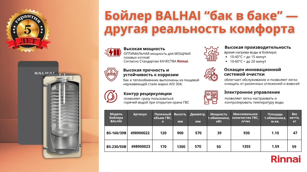 Представьте себе холодное зимнее утро. Вы заходите в душ, поворачиваете кран и... вас обволакивает струя идеально теплой, комфортной, стабильной воды. Никаких внезапных ледяных шоков, никаких скачков температуры. Только блаженное тепло, которое бодрит и согревает одновременно. ✨ А теперь скажите, разве не об этом мы все мечтаем? О надежности, комфорте и настоящем уюте, который начинается с таких простых вещей, как горячая вода дома. Сегодня мы познакомим вас с настоящим «титаном» в мире водонагревателей — бойлером косвенного нагрева BALHAI типа «БАК-В-БАКЕ». Это не просто бочка с водой, это умная и элегантная инженерная система, которая может стать сердцем вашего домашнего комфорта. Давайте разберемся без заумных учебников! Обычный бойлер косвенного нагрева имеет внутри змеевик (теплообменник), по которому бежит горячий теплоноситель от котла и нагревает воду вокруг него. Принцип эффективный, но у него есть слабые места: змеевик может покрыться накипью, и его КПД со временем падает. Си