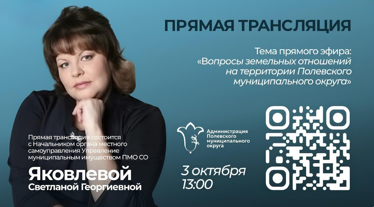 Начальник ОМС "УМИ" проведет прямую линию Начальник ОМС «Управление муниципальным имуществом» Полевского муниципального округа Свердловской области Светлана Яковлева проведет 3 октября в 13:00 прямую линию по вопросам земельных отношений на территории Полевского. Сбор вопросов организован через "Платформу обратной связи" портала Госуслуг с 8.00ч. 1 октября 2025 года до 08.00ч. 2 октября 2025 года. Трансляция состоится тут: https://vk.com/video-217384749_456239038 Информация: Управление муниципальным имуществом Полевского