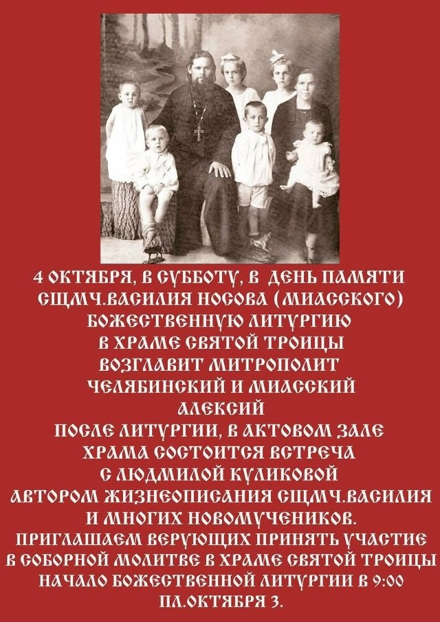 ✨️ Дорогие братья и сестры! Приглашаем разделить радость совместной молитвы с владыкой Алексием, и принять участие во встрече с автором жизнеописания сщмч. Василия Носова (Миасского)! ----- Сообщает: Миасское северное благочиние 🫛Миасс Православный