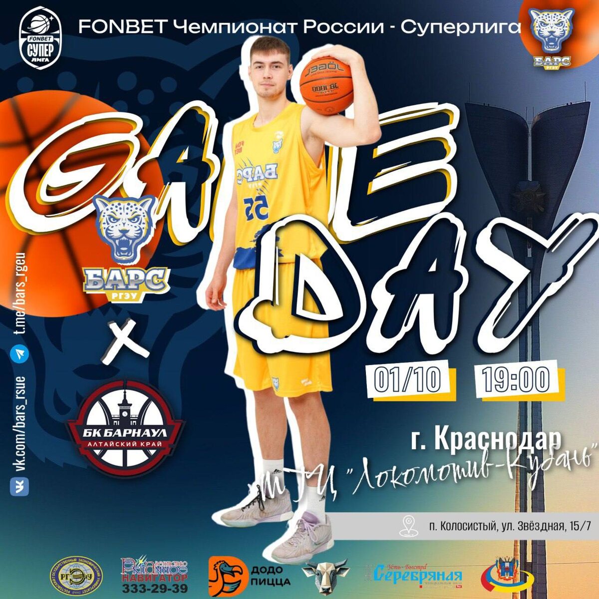На площадке встретятся команды БАРС-РГЭУ и БК «Барнаул» (Алтайский край) в 19:00.