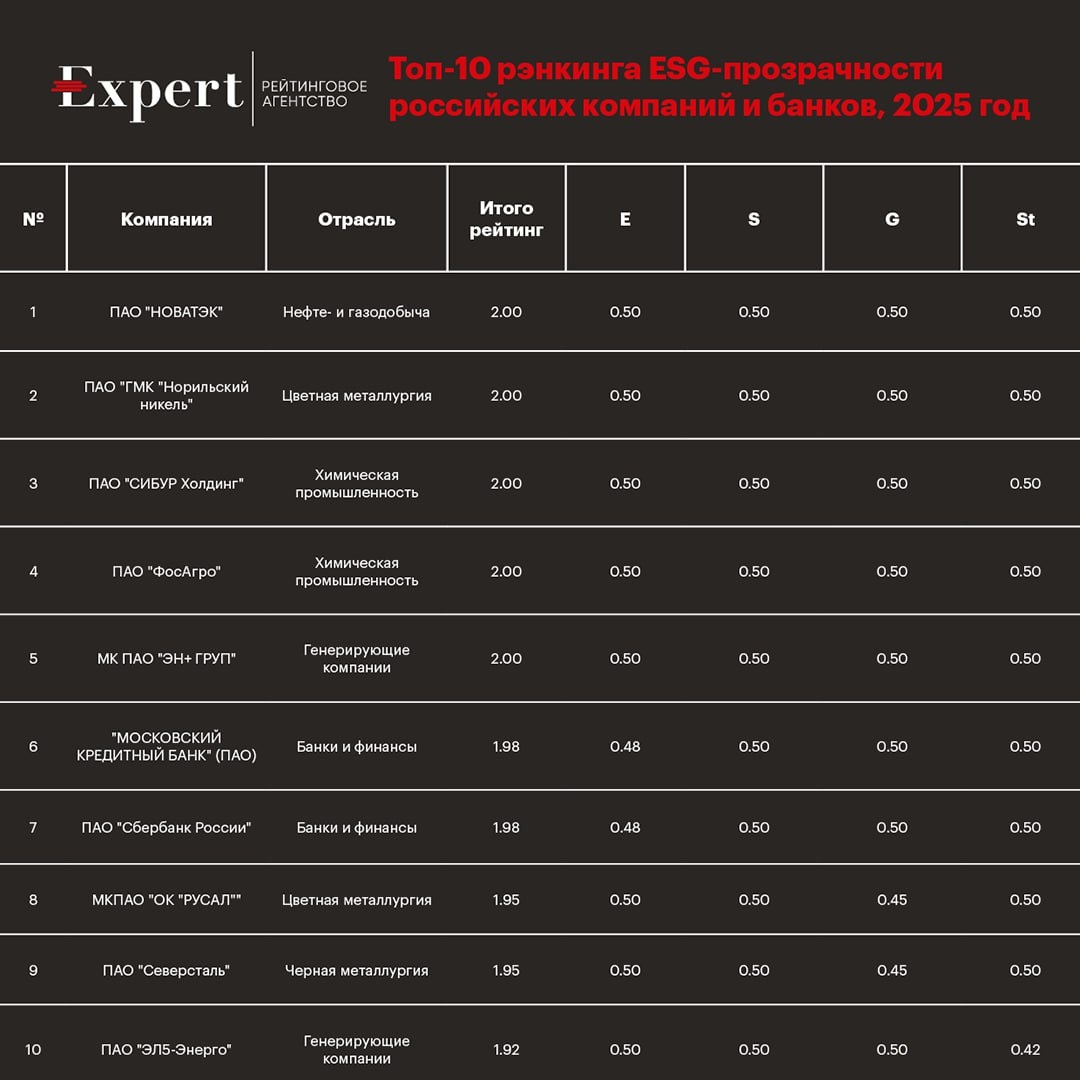 ππππππΠΠ°ΠΊ ΠΈ ΠΎΠ±Π΅ΡΠ°Π»ΠΈ π- ΡΠΎΠΏ-10 ΡΡΠ½ΠΊΠΈΠ½Π³Π° ESG-ΠΏΡΠΎΠ·ΡΠ°ΡΠ½ΠΎΡΡΠΈ ΡΠΎΡΡΠΈΠΉΡΠΊΠΈΡ ΠΊΠΎΠΌΠΏΠ°Π½ΠΈΠΉ ΠΈ Π±Π°Π½ΠΊΠΎΠ² Π·Π° 2025 Π³ΠΎΠ΄