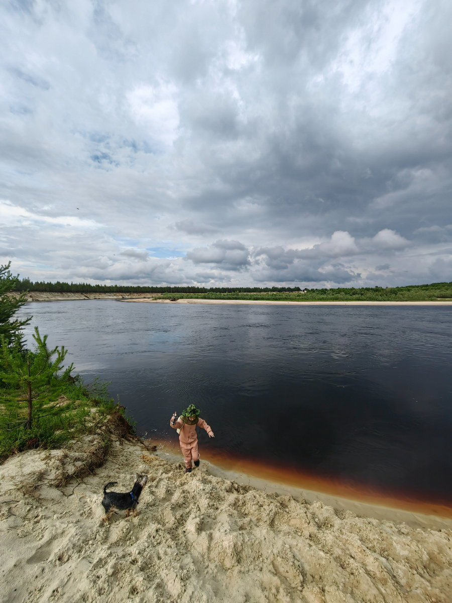 Т.е. при первых посещениях этого места мы с ним исходили весь берег реки, но приближаться к обрыву я ему категорически запрещал... хотя там где высокий берег переходил в болото он спокойно спрыгивал и спускался к реке.