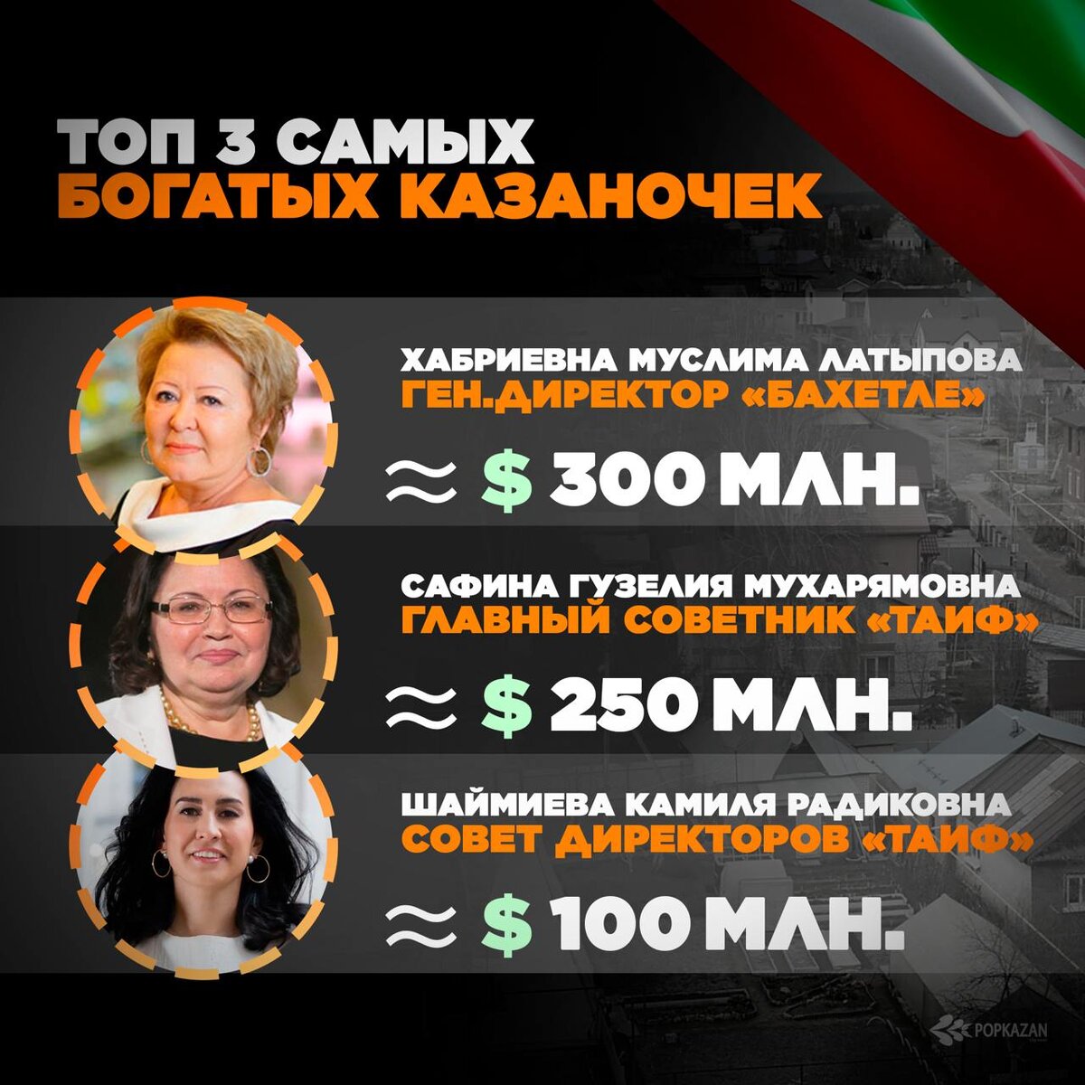🤑 ТОП 3 САМЫХ БОГАТЫХ КАЗАНОЧЕК В этой подборке мы расскажем о трёх самых богатых женщинах Казани — тех, кто смог добиться финансового олимпа ❤️ - МНЕ БЫ ВСЕГО 0,0001% ОТ ЭТОГО 😁 Наш telegram-bot про Казань