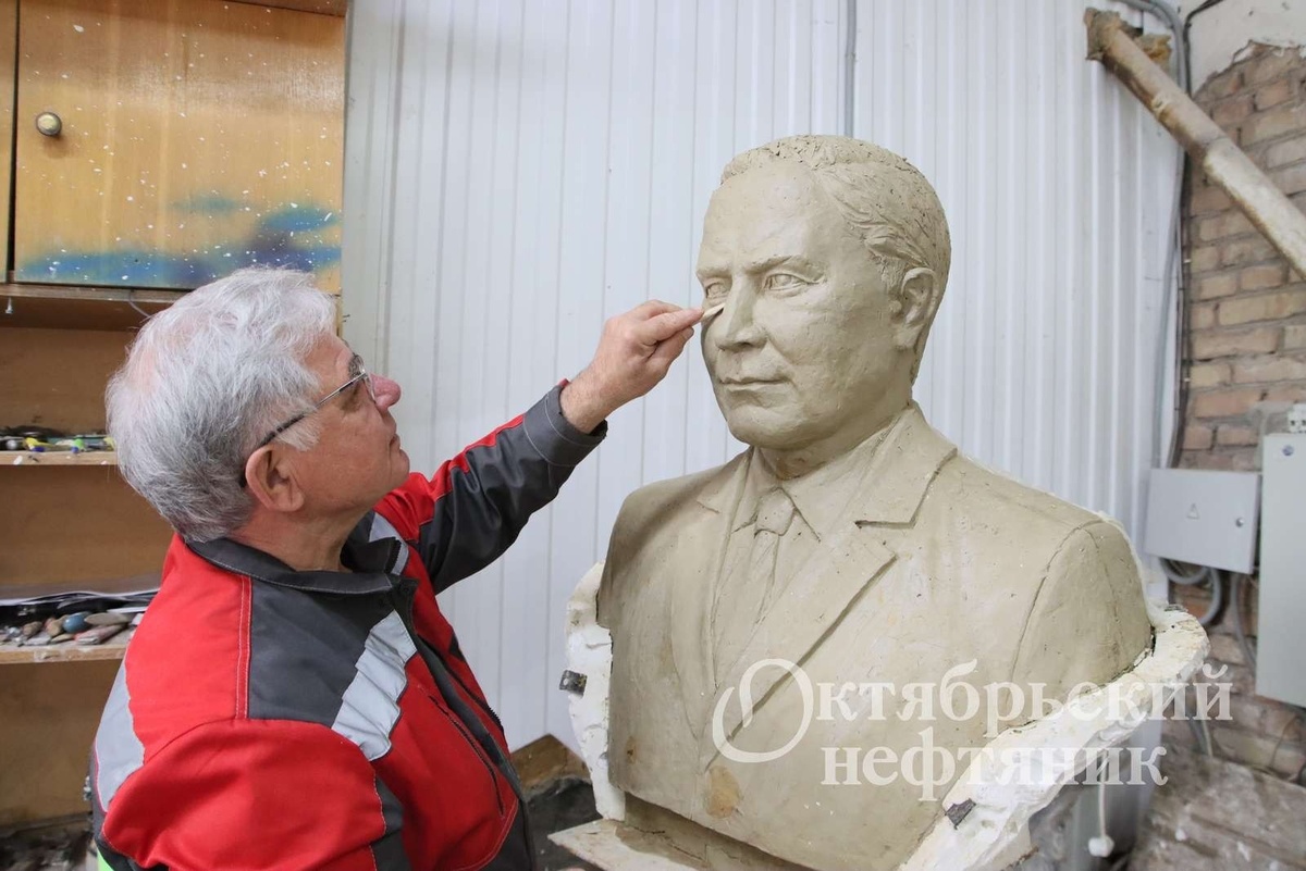 О будущей Аллее Героев Социалистического Труда в парке «Нефтяник» глава администрации Алексей Пальчинский сообщил на торжественном митинге накануне Дня нефтяника. Рядом с памятником «Трудовой доблести нефтяников города» в год 80‑летия Октябрьского установят семь бюстов Героев: Ричарда Хайрулловича Аллаярова, Тимирбулата Минихановича Вильданова, Степана Ивановича Кувыкина, Ивана Дмитриевича Куприянова, Ляйли Ханиповны Марданшиной, Дмитрия Ивановича Михайлова, Иосифа Болеславовича Поляковского. В мастерской Рамиля Шафигуллина кипит работа. В процессе изготовления два бюста, которые первым делом нужно создать в глине. — Почти готовы пять бюстов из гипса. Их ещё предстоит немного доработать, только после бюсты отольют в бронзе в Нижнем Тагиле. Спешки нет, поэтому со всем вниманием отношусь к деталям, — говорит Рамиль Закариевич. Работу принимает совет ветеранов города. После правок скульптор переводит глиняные образы в гипс. Тем временем в парке «Нефтяник» уже готовят основу под бюсты. Стр