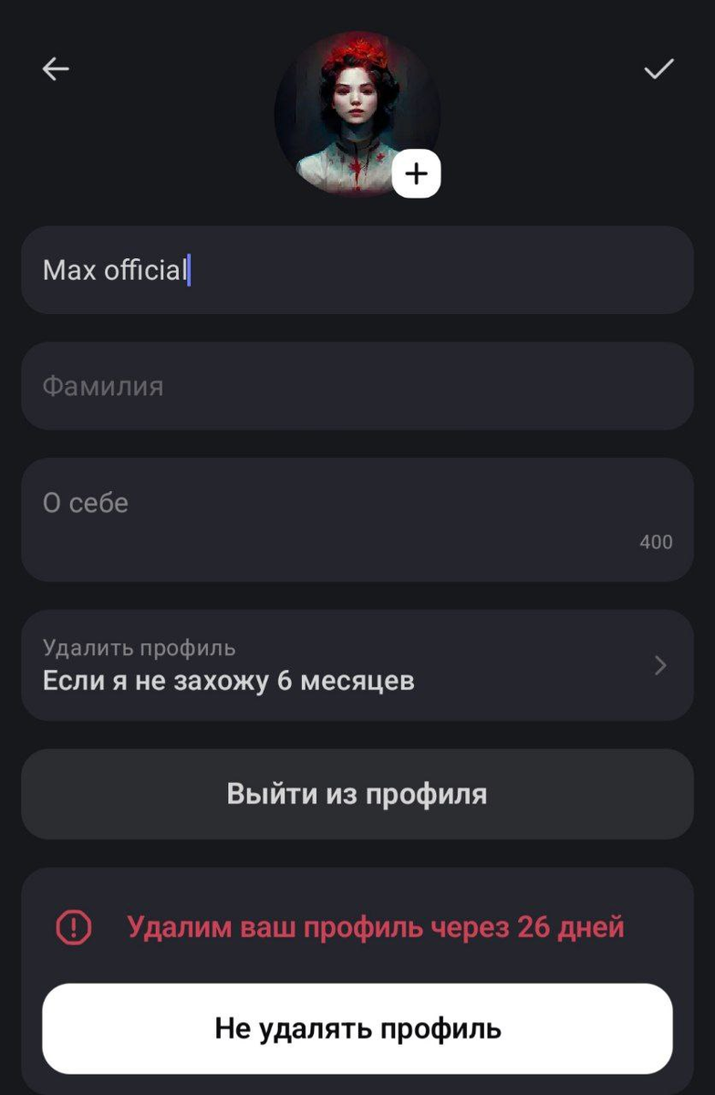 1. Открываем MAX и переходим к редактированию своего профиля.