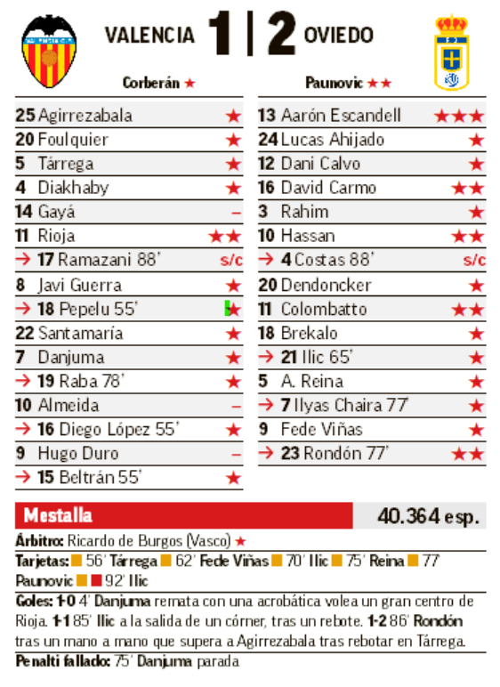 Валенсия теряет три очка на Месталье: Овьедо удивляет болельщиков