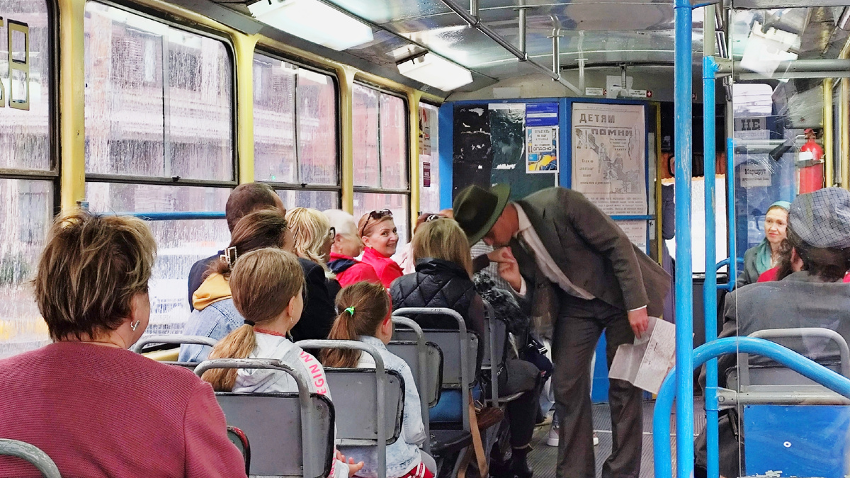 Есть и часть обстоятельств, которые предсказать невозможно. Однажды на линии, например, были проблемы с электричеством, и трамвай остановился. Тогда всем артистам пришлось входить и выходить из вагона в одном месте.